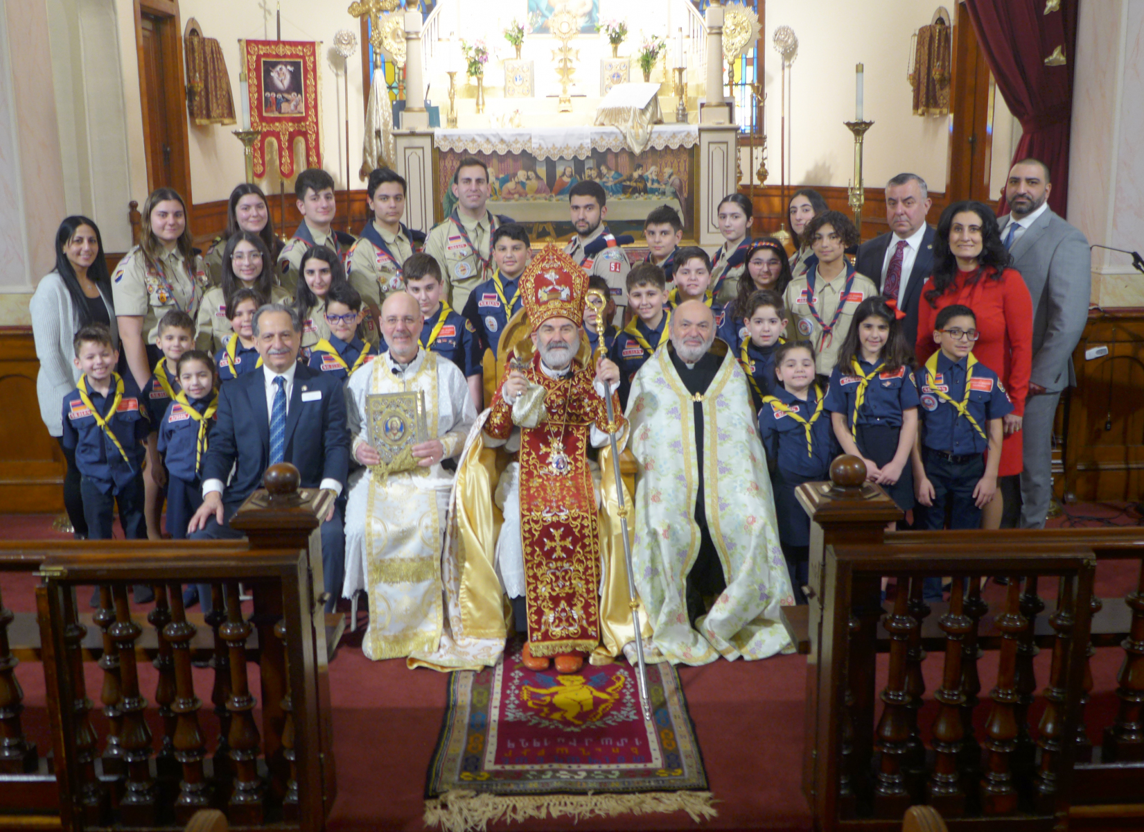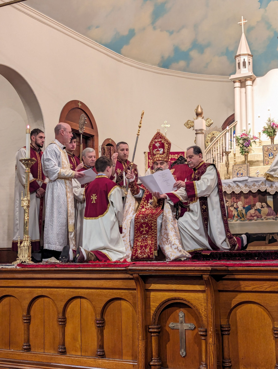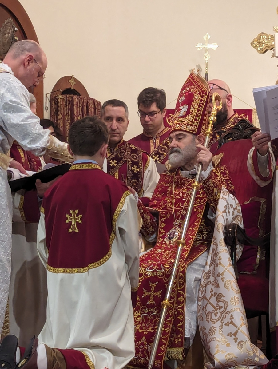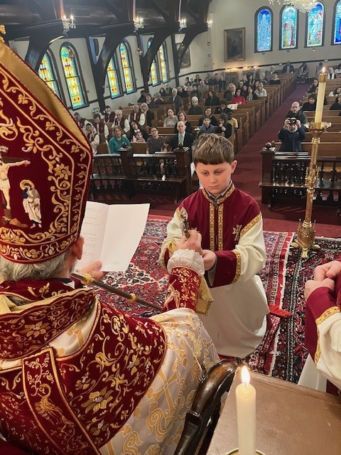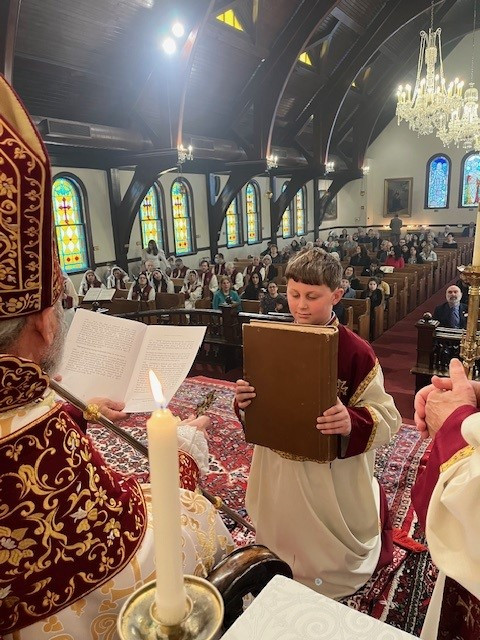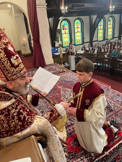 On February 11th, the Sts. Vartananz Armenian Apostolic Church of Providence, RI, joyfully celebrated its name day under the auspices of His Eminence Archbishop Anoushavan Tanielian. The church was filled with our faithful parishioners as Srpazan Anoushavan Tanielian celebrated the Soorp Badarak and ordained Matthew Burke to the rank of Acolyte. Following Matthew’s ordination, Srpazan Anoushavan gave an inspirational message to the parishioners, engaging them to ponder how Jesus had sacrificed himself for the sin that our fore parents engaged in. He also provided a metaphor regarding God’s glory and the pricelessness of what He provides to us. He spoke about what would happen if you offered a child both a toy and a diamond. If you asked the child to choose one or the other, the child would pick the toy, not understanding the value of the diamond. Srpazan was referring to how our forefathers were tricked into choosing sin. Because we are not omniscient, we do not value what God is offering, we must put God first in our lives to receive His glory, because the Lord has made this all transparent to us when he came and died for our sins. He closed by asking us that in celebration of Vartanantz day that we become spiritual warriors and use our gift of free will to follow Christ’s mission.