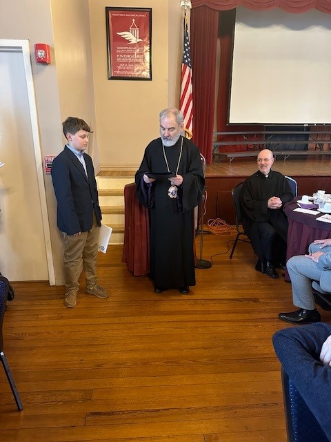 Der Kapriel Nazarian provided his remarks, congratulating Matthew and his family for their dedication to serving our church and praising Raffi for his work, dedication, and being a great example for his peers. Srpazan Anoushavan Tanielian provided the closing remarks and blessed all those in attendance. To conclude the afternoon, all in attendance sang Giligia.