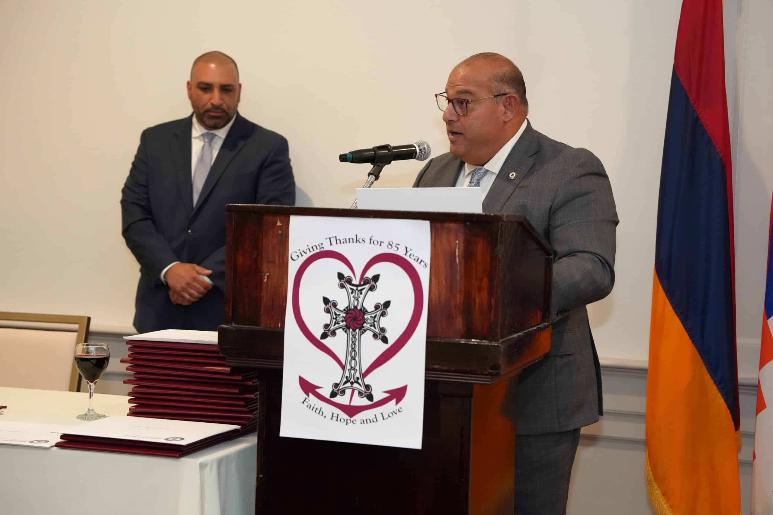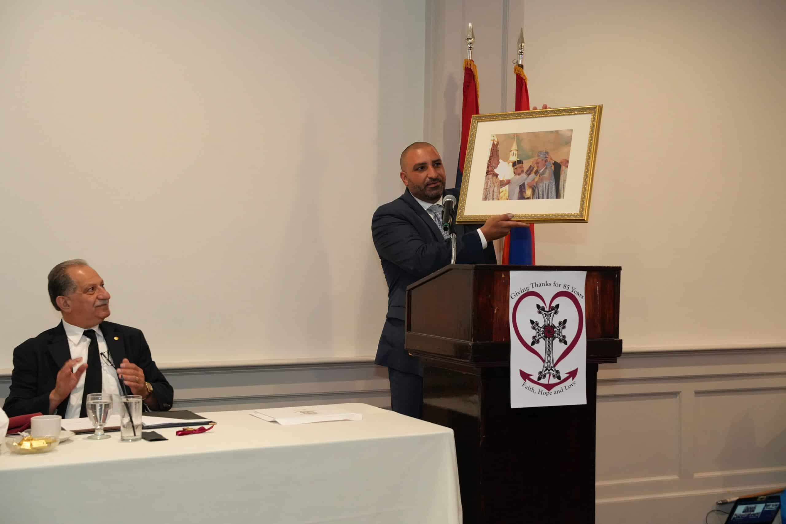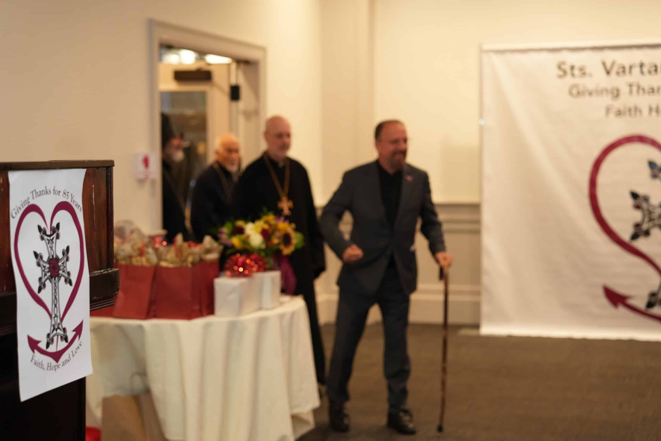 Board of Trustees chair Levon Attarian eloquently addressed the room, citing examples of the celebration’s theme of faith, hope and love. Founders who took a leap of faith 85 years ago believed in their mission for the community and built the foundation of the Sts. Vartanantz Church community. He cited the church growing into a little Armenia, an epicenter of cooperation to sustain an Armenian identity. The forefathers had hope that their vision would thrive in the future. The love that Attarian observed of all the celebration attendees must ensure the successful mission for the church’s posterity. It was noted also that our church has been a refuge for so many in the wake of civil wars abroad. Our belief in a free and independent Armenia for decades has also fostered political activism in Rhode Island and nationally, as well.