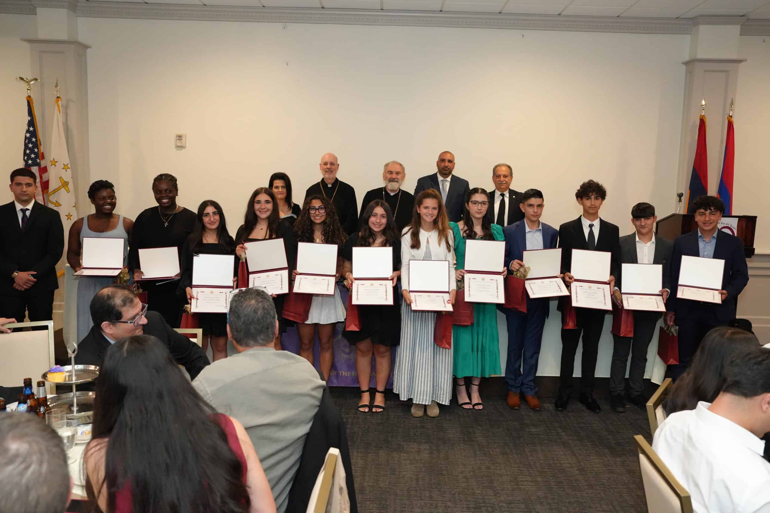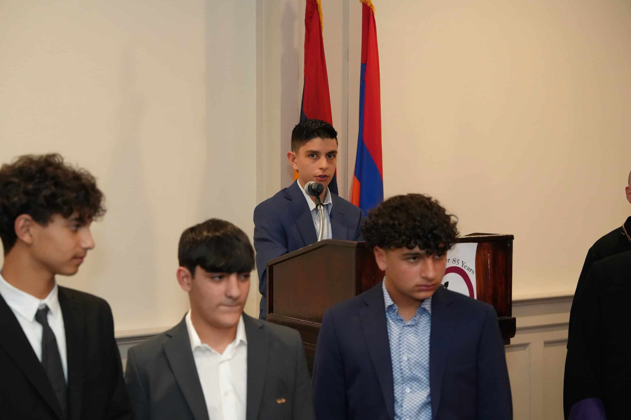 Also honored were the young members of the Salt and Light Ministry, a program that centers on the many dimensions of spiritual growth of our youth. Through mentorship to young people ages 12 to 18, those members can explore issues of faith in a safe environment. Current mentors since its 2019 inception are Armand Kibarian, Shakay Kizirian, Jayne Zobian and Artur Arslanyan, who also happens to be a charter member of the ministry. The current members of Salt and Light are Ellen Arslanyan, Vanessa Atakian, Ani Derderian, Nadia Keshijian, Aren Khatchadourian, Leila Khatchadourian, Sareen Khatchadourian, Ani Manzo, Kethia Masupa, Gygy Mwlilikwa, Sarkis Nasr, Garo Tarbinian, Peter Zaytounian and Garen Zeitounian. Derderian and Zaytounian both spoke about what Salt and Light means to them, individually and as a group, clearly moving those in the audience with their sincerity.