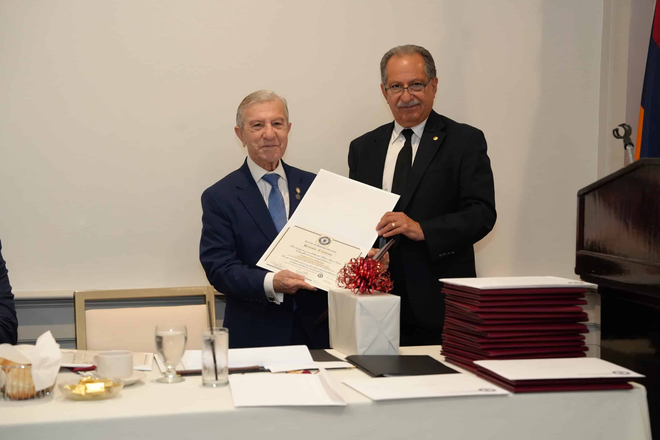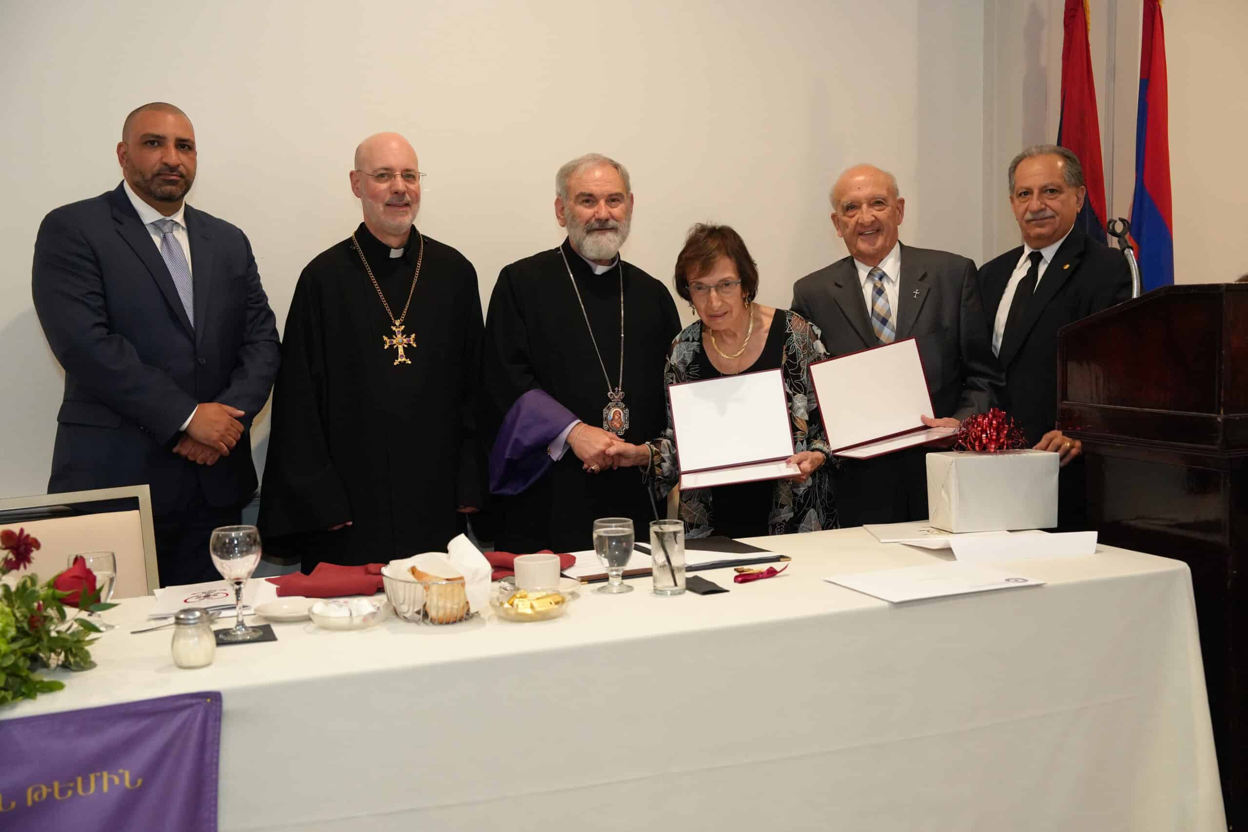 The first honoree was Archdeacon Ara Nalbandian, whose journey to the United States as a very young man led him to Providence, where he connected with extended family members who lovingly supported his professional and spiritual development in his new environment. Community and family connections led Ara to become an active member of Sts. Vartanantz Church, where Archpriest Fr. Mesrob Tashjian welcomed him as well. He taught at Mourad Armenian School, joined the choir, later on served on Atlar as a Archdeacon and became secretary for the Board of Trustees, recording minutes in Armenian and translating them to English. Attending church every week, Nalbandian dedicated his efforts as a delegate to the Eastern Prelacy for 24 years. As a stalwart supporter and facilitator for so many areas of church endeavors, he expressed appreciation for all his experiences and his many supporters, including his devoted wife Maggie.
