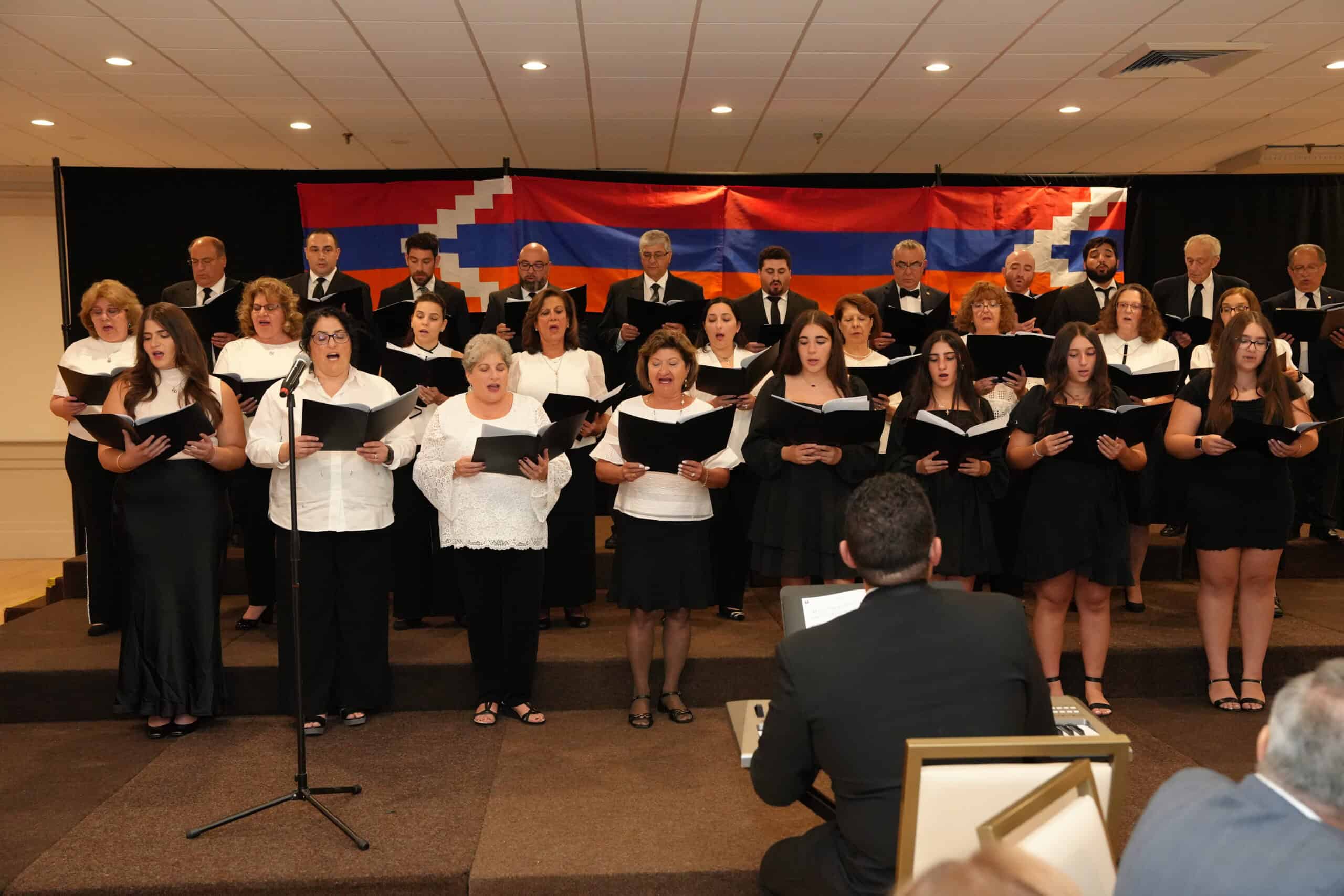 The Sts. Vartanantz Church Choir’s 29 members, met and rehearsed for about three months under the able leadership of Raffi Rachdouni, along with choir director Debra Pjojian, to perform four Armenian selections, including two folk songs by Komitas and two hymns. The resounding applause and appreciation from attendees was a testament to the dedication and hard work of the choir. Taleen Donoyan offered heartfelt renditions of the American and Armenian national anthems.
