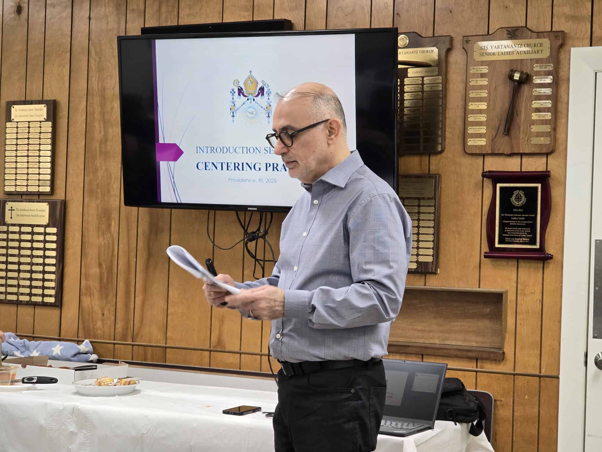 On Saturday, November 15, more than 40 faithful parishioners and friends enthusiastically participated in the spiritual workshop on Centering Prayer organized by our Christian Education Committee (CEC). Our guest speaker, Deacon Garo Nokhoudian from Sourp Hagop Armenian Church in Montreal, was engaging throughout day as he moved seamlessly through his presentation, answering questions, sharing his experiences, and setting the atmosphere for our time practicing Centered Prayer. As he explained, this is a method of prayer that leads to a closer union with God and becomes Contemplative Prayer as our personal relationship with God grows stronger.