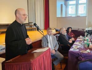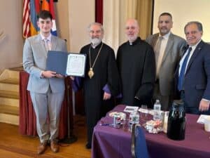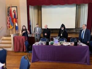 Chairman of the Board Paulie Haroian welcomed everyone and served as master of ceremonies for the afternoon, offering the Board’s congratulations to the newy-ordained Subdeacon and the afternoon’s honorees. Taleen Donoyan sang the national anthems of the United States and Armenia to open the celebration, and Archbishop Tanielian offered the invocation.