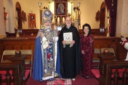 “Der Hayr, you have flourished this community as a real exemplary shepherd,” His Eminence said. “Like your predecessors, Der Mesrob and Der Gomidas, you really brought a new flavor, a new understanding of faith in our Sts. Vartanantz Church.” Archbishop Tanielian then read the encyclical from Catholicos Aram I, which said in part, “We are sure that this honor will bring a new dimension and strength in your service to continue your mission in this church.”